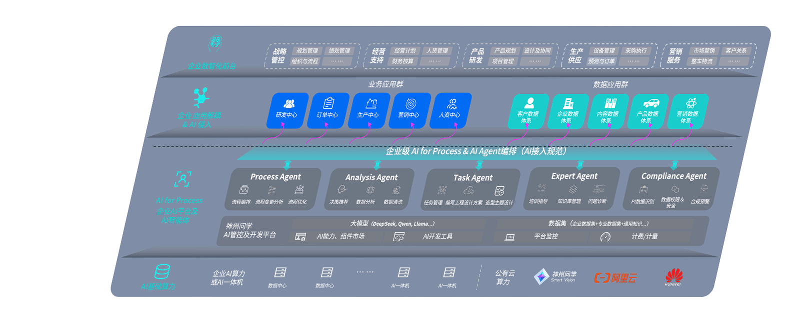 端到端的一站式AI工作空间深度融合了从企业战略规划到日常经营的全流程业务板块,,,,定向解决车企内部领域多、、部门多、、、、链条长、、、场景碎片化等难题,,支持车企快速构建以AI为核心的生产力写作体系,,,实现任务执行与AI能力的无缝集成与交互
